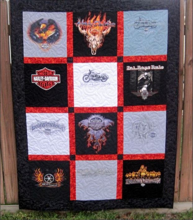 Please click on the pictures for a closer view of the tee shirt quilts created by our talented quilt maker. Our tshirt quilts are made to be high-quality quilts that last a lifetime. Also pictured are some of the other quilts Sharon has made.