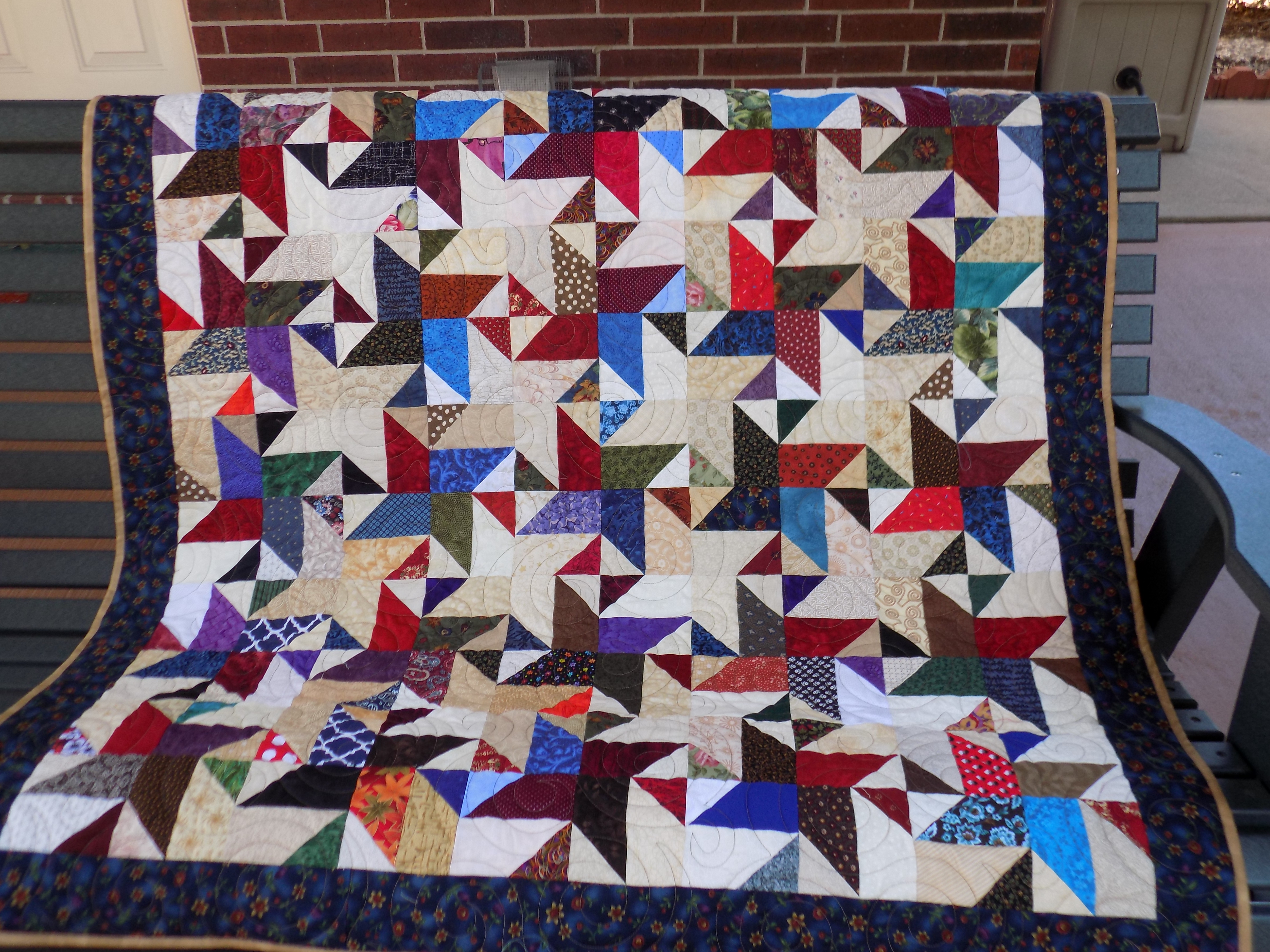expanding so there will be a greater need. I’ve got more patriotic fabric to use in a couple more quilts and I’m looking forward to making them. I also just finished a donation quilt for West Houston Quilter’s Guild to be given to a nursing home resident at Christmas. Our guild meetings are the third Wednesday of the month, so I will take it for Show and Tell and then turn it in to our Comfort Bee who take care of making, collecting and distributing our guild’s donation quilts.